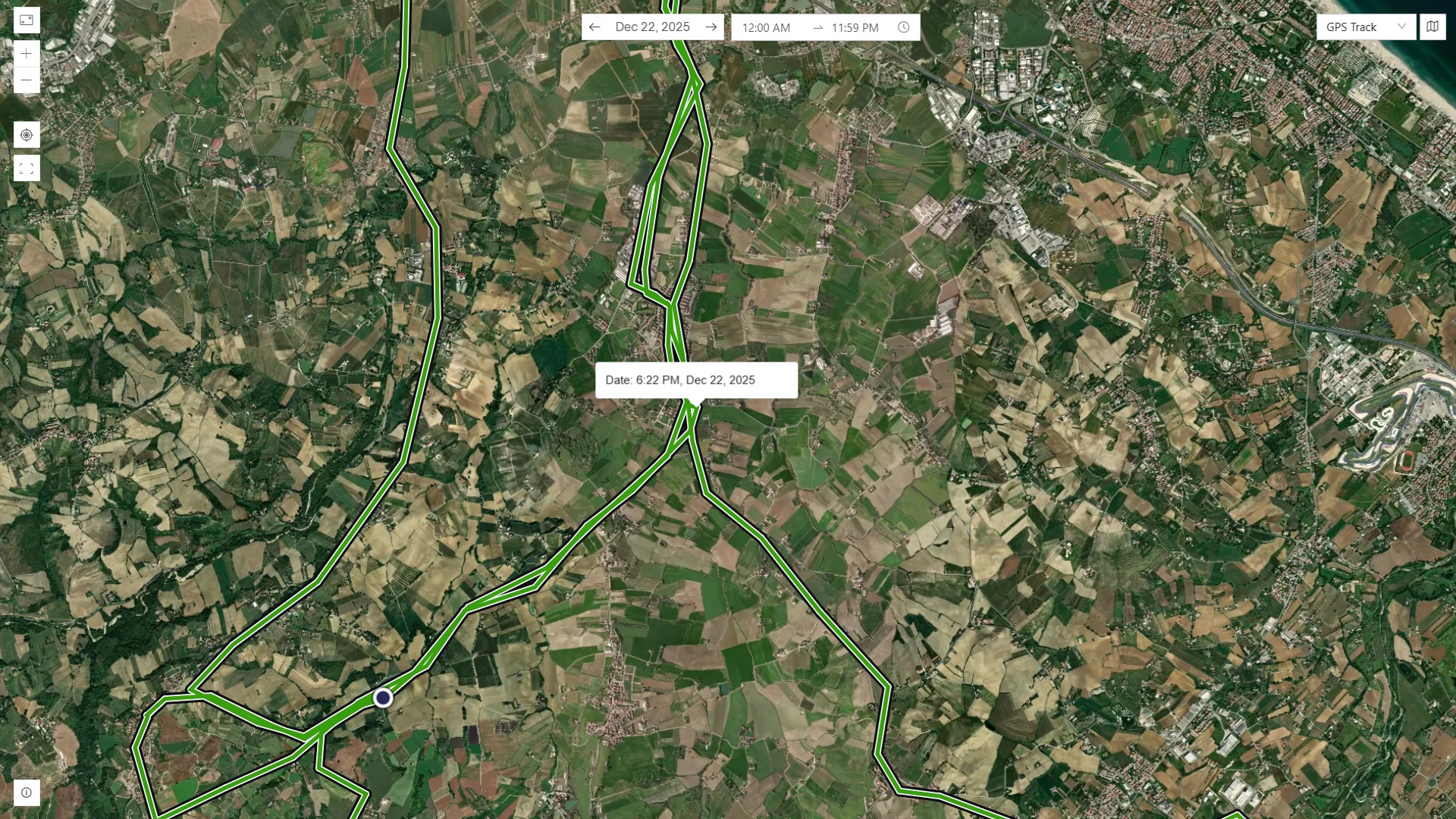 Percorsi reali del mezzo con storico e verifica delle soste.